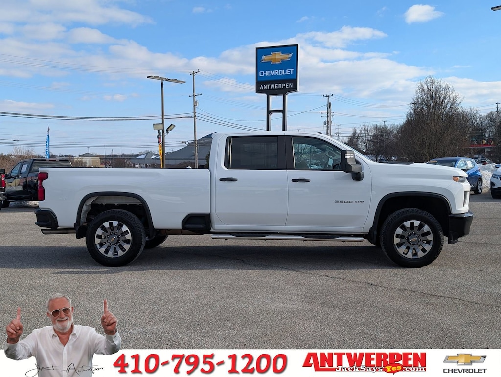 Custom Convenience Package (Electric Rear-Window Defogger, EZ Lift Power Lock & Release Tailgate, Integrated Trailer Brake Controller, LED Cargo Area Lighting, and Remote Vehicle Starter System), Infotainment Package (Chevrolet Connected Access Capable, Compass, OnStar & Chevrolet Connected Services Capable, SiriusXM Radio, and Wi-Fi Hotspot Capable), Preferred Equipment Group 1CX (170 Amp Alternator, 2-Speed Electronic Shift Transfer Case, 3.5 Diagonal Monochromatic Display DIC, Black Mirror Caps, Bluetooth® For Phone, Body Color Front Grille, Color-Keyed Carpeting Floor Covering, Deep-Tinted Glass, Electronic Cruise Control w/Set & Resume Speed, Front Rubberized Vinyl Floor Mats, Heated Vertical Trailering Mirrors, Locking Tailgate, Manual Tailgate Function w/No EZ Lift, Manual Tilt-Wheel Steering Column, Power Door Locks, Power Front Windows w/Driver Express Up/Down, Power Front Windows w/Passenger Express Down, Power Rear Windows w/Express Down, Rear 60/40 Folding Bench Seat (Folds Up), Rear Rubberized Vinyl Floor Mats, Remote Keyless Entry, and Standard Tailgate), Safety Confidence Package (4.2 Diagonal Color Display Driver Info Center, Automatic Emergency Braking, Forward Collision Alert, and Steering Wheel Audio Controls), Snow Plow Prep/Camper Package (220 Amp Alternator), Suspension Package, Chevrolet Certified Pre-Owned Certified, 6-Speed Automatic, 4WD, Black Cloth, 3.73 Rear Axle Ratio, 4-Wheel Disc Brakes, 6 Speakers, 6-Speaker Audio System, 720 Cold-Cranking Amps Heavy-Duty Battery, ABS brakes, Air Conditioning, Alloy wheels, AM/FM radio, Apple CarPlay/Android Auto, Black Chevytec Spray-On Bedliner, Brake assist, Cloth Seat Trim, Delay-off headlights, Driver door bin, Dual front impact airbags, Dual front side impact airbags, Electronic Stability Control, Front 40/20/40 Split-Bench Seats, Front anti-roll bar, Front Center Armrest w/Storage, Front reading lights, Front wheel independent suspension, Fully automatic headlights, Heated door mirrors, Illuminated entry, LED Smoked Amber Roof Marker Lamps, Low tire pressure warning, Occupant sensing airbag, Outside temperature display, Overhead airbag, Overhead console, Panic alarm, Passenger door bin, Passenger vanity mirror, Power door mirrors, Power steering, Power windows, Premium audio system: Chevrolet Infotainment 3, Radio: Chevrolet Infotainment 3 System, Rear reading lights, Rear step bumper, Remote keyless entry, Speed control, Split folding rear seat, Tachometer, Tilt steering wheel, Traction control, Trip computer, Turn signal indicator mirrors, Upfitter Switch Kit (5), Variably intermittent wipers, Voltmeter, and Wheels: 20 10-Spoke Machined Aluminum.