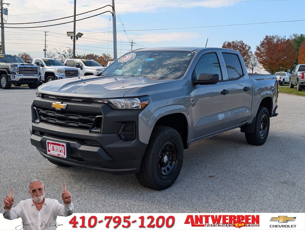 Price includes: $1000 - Chevrolet Consumer Cash Program. Exp. 12/01/2025 $500 - GM Military Cash Allowance Program. Exp. 01/02/2026 PRICE INCLUDES: $500 - GM FINANCIAL STANDALONE SPECIAL APR & DOWN PAYMENT ASSISTANCE PROGRAM: $500 DISCOUNT AND 15.90% APR FOR 36 MONTHS. $35.11 PER $1000 FINANCED. AVAILABLE TO WELL QUALIFIED BUYERS WHO FINANCE THROUGH GM FINANCIAL. XGU. EXP. 11/03/2025 $500 - GM MILITARY CASH ALLOWANCE PROGRAM. EXP. 01/02/2026 PRICED BELOW KBB FAIR PURCHASE PRICE! STERLING GRAY METALLIC 2025 CHEVROLET COLORADO WORK TRUCK RWD 8-SPEED AUTOMATIC 2.7L I4 TURBOCHARGED DOHC 16V LEV3-ULEV50 310HP, 3.42 REAR AXLE RATIO, 4-WAY MANUAL PASSENGER SEAT ADJUSTER, 4-WHEEL DISC BRAKES, 6 SPEAKERS, 6-SPEAKER AUDIO SYSTEM FEATURE, 6-WAY MANUAL DRIVER SEAT ADJUSTER, ABS BRAKES, AIR CONDITIONING, AM/FM RADIO: SIRIUSXM, APPLE CARPLAY/ANDROID AUTO, AUTO HIGH-BEAM HEADLIGHTS, AUTOMATIC EMERGENCY BRAKING, BRAKE ASSIST, CHEVY SAFETY ASSIST, CLOTH SEAT TRIM, DELAY-OFF HEADLIGHTS, DRIVER DOOR BIN, DRIVER VANITY MIRROR, DUAL FRONT IMPACT AIRBAGS, DUAL FRONT SIDE IMPACT AIRBAGS, ELECTRONIC STABILITY CONTROL, EMERGENCY COMMUNICATION SYSTEM: ONSTAR, FOLLOWING DISTANCE INDICATOR, FORWARD COLLISION ALERT, FRONT ANTI-ROLL BAR, FRONT BUCKET SEATS, FRONT CENTER ARMREST, FRONT PEDESTRIAN & BICYCLIST BRAKING, FRONT WHEEL INDEPENDENT SUSPENSION, HEATED DOOR MIRRORS, INTELLIBEAM AUTOMATIC HIGH BEAM ON/OFF, LANE KEEP ASSIST W/LANE DEPARTURE WARNING, LOW TIRE PRESSURE WARNING, NAVIGATION SYSTEM, OCCUPANT SENSING AIRBAG, OVERHEAD AIRBAG, PANIC ALARM, PASSENGER DOOR BIN, PASSENGER VANITY MIRROR, POWER DOOR MIRRORS, POWER STEERING, POWER WINDOWS, RADIO DATA SYSTEM, RADIO: 11.3'' DIAGONAL ADVANCED COLOR LCD DISPLAY, REAR STEP BUMPER, REAR WINDOW DEFROSTER, REMOTE KEYLESS ENTRY, SECURITY SYSTEM, SIRIUSXM TRIAL SUBSCRIPTION, SPEED CONTROL, SPEED-SENSING STEERING, SPLIT FOLDING REAR SEAT, STEERING WHEEL MOUNTED AUDIO CONTROLS, STEERING WHEEL MOUNTED AUDIO CONTROLS, TACHOMETER, TILT STEERING WHEEL, TRACTION CONTROL, TRIP COMPUTER, VARIABLY INTERMITTENT WIPERS, WHEELS: 17'' X 8'' ULTRA SILVER METALLIC STEEL, AND WIRELESS PHONE PROJECTION.