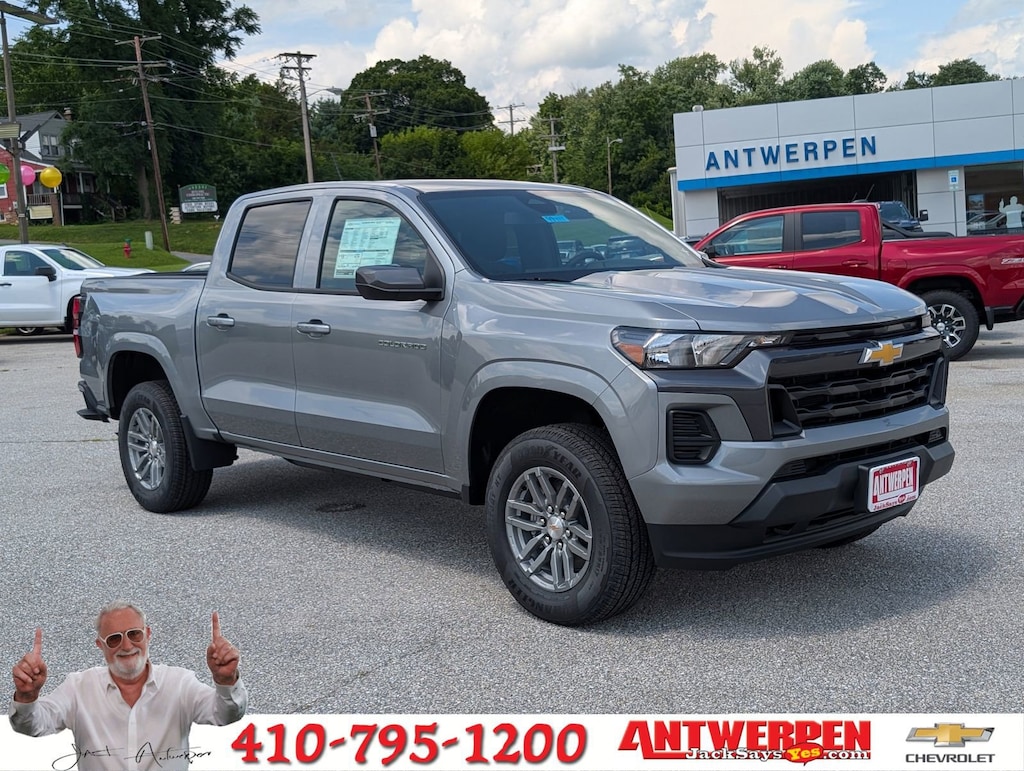Price includes: $500 - GM Financial Standalone Special APR & Down Payment Assistance Program: $500 discount and 15.90% APR for 36 months. $35.11 per $1000 financed. Available to well qualified buyers who finance through GM Financial. XGU. Exp. 11/03/2025 $500 - GM Military Cash Allowance Program. Exp. 01/02/2026 4WD. Sterling Gray Metallic 2025 Chevrolet Colorado LT4WD 8-Speed Automatic 2.7L I4 Turbocharged DOHC 16V LEV3-ULEV50 310hpAdvanced Trailering Package (Automatic Locking Rear Differential, Blind Zone Steering Assist w/Trailering, and Trailering App), Heavy-Duty Trailering Package (Integrated Trailer Brake Controller), LT Package, Preferred Equipment Group 4WT (Automatic Emergency Braking, Chevy Safety Assist, Following Distance Indicator, Forward Collision Alert, Front Pedestrian & Bicyclist Braking, IntelliBeam Automatic High Beam On/Off, and Lane Keep Assist w/Lane Departure Warning), 4WD, 1st & 2nd Row All-Weather Floor Liner (LPO), 220 Amp Alternator, 3.42 Rear Axle Ratio, 4-Way Manual Passenger Seat Adjuster, 4-Wheel Disc Brakes, 6 Speakers, 6-Speaker Audio System Feature, 8-Way Power Driver Seat Adjuster, ABS brakes, Air Conditioning, Alloy wheels, AM/FM radio: SiriusXM, Apple CarPlay/Android Auto, Auto High-beam Headlights, Auto-dimming Rear-View mirror, Automatic temperature control, Brake assist, Bumpers: body-color, Cargo Area Lamps (LPO), Cloth Seat Trim, Compass, Delay-off headlights, Driver door bin, Driver vanity mirror, Dual front impact airbags, Dual front side impact airbags, Electronic Stability Control, Emergency communication system: OnStar, Front anti-roll bar, Front Bucket Seats, Front Center Armrest, Front dual zone A/C, Front License Plate Kit, Front Passenger Seatback Map Pocket, Front reading lights, Front wheel independent suspension, Heated door mirrors, Heated Driver & Front Passenger Seats, Heated front seats, Illuminated entry, Low tire pressure warning, Navigation System, Occupant sensing airbag, Outside temperature display, Overhead airbag, Overhead console, Panic alarm, Passenger door bin, Passenger vanity mirror, Power door mirrors, Power Driver Lumbar Control Seat Adjuster, Power driver seat, Power steering, Power windows, Radio data system, Radio: 11.3 Diagonal Advanced Color LCD Display, Rear reading lights, Rear step bumper, Rear window defroster, Remote keyless entry, Security system, SiriusXM Trial Subscription, Speed control, Speed-sensing steering, Split folding rear seat, Steering Wheel Mounted Audio Controls, Steering wheel mounted audio controls, Tachometer, Telescoping steering wheel, Tilt steering wheel, Traction control, Trip computer, Variably intermittent wipers, Wheels: 17 x 8 Argent Metallic Aluminum, and Wireless Phone Projection.5 STAR RATED! NEW CAR WARRANTY STANDARD 3YR / 36K - FACTORY COMPREHENSIVE WARRANTY 5YR / 60K - POWERTRAIN WARRANTY COMPLIMENTARY ROADSIDE ASSISTANCE CALL 1-800-243-8872 USED CAR WARRANTY STANDARD 20 YEAR/ 200,000 MILE POWERTRAIN WARRANTY WHICHEVER COMES FIRST SALES HOURS M-F 9 A.M- 7 P.M, SAT- 9 A.M. - 5 P.M SUNDAY CLOSED. Welcome to your Maryland Chevrolet dealership! At Antwerpen Chevrolet, we know that you have plenty of choices when looking for new or used cars in Eldersburg, MD. What sets us apart? We are family-owned, and when you visit our dealership, it shows. As an Eldersburg car dealer also serving Clarksville customers, we offer a wide selection of new and used trucks, cars and SUV's for your regular commute! We've also been serving as your Westminster Chevrolet dealer since 1979 and are proud to bring you the newest and most fuel-efficient Chevrolet vehicles in Maryland. With cars like the Chevy Bolt and Malibu, we are sure to have the automobile to suit your needs. We also have a wide selection of SUVs and trucks such as the Silverado, Equinox, and Tahoe here at your Maryland Chevrolet dealership.