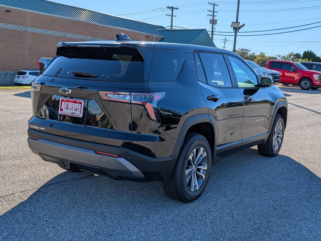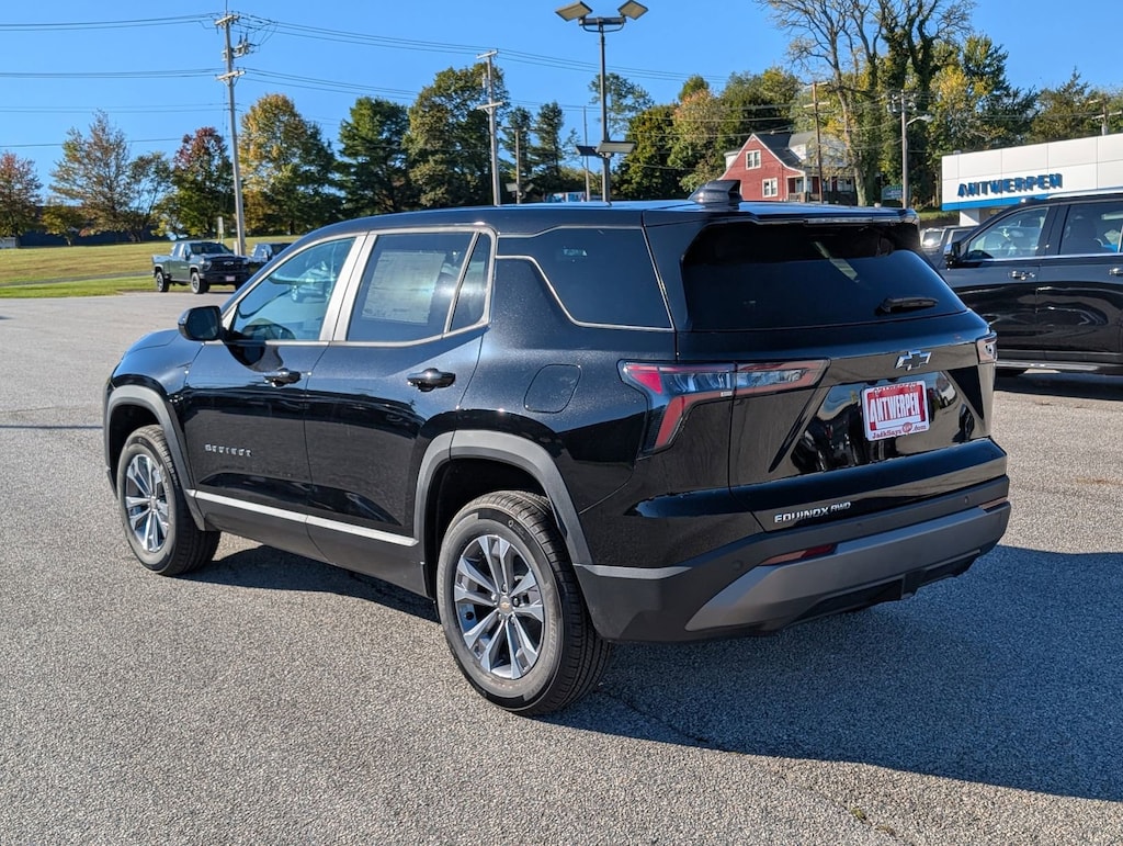 AWD. Black Metallic 2026 Chevrolet Equinox LTAWD 8-Speed Automatic 1.5L DOHC24/29 City/Highway MPGConvenience Package II (2-Way Power Driver Lumbar Control Seat Adjuster, Autosense Hands-Free Programmable Power Liftgate, Cabin Humidity and Windshield Sensor, Driver 8-Way Power Seat Adjuster, Dual-Zone Automatic Climate Control, Evotex Seat Trim, Heated Wiper Park, Intermittent Front Rain-Sensing Wipers, Overhead Sunglass Storage, Programmable Universal Home Remote, and Wireless Phone Charging For Portable Devices), Preferred Equipment Group 2LT, AWD, 3.47 Final Drive Axle Ratio, 4-Wheel Disc Brakes, 6 Speakers, ABS brakes, Air Conditioning, All-Weather Floor Mats, Alloy wheels, AM/FM radio: SiriusXM, Auto High-beam Headlights, Brake assist, Bumpers: body-color, Cloth Seat Trim, Compass, Delay-off headlights, Driver 6-Way Manual Seat Adjuster, Driver door bin, Driver vanity mirror, Dual front impact airbags, Dual front side impact airbags, Electronic Stability Control, Emergency communication system: OnStar and Chevrolet connected services capable, Four wheel independent suspension, Front and Rear Black Bowtie Emblems, Front anti-roll bar, Front Bucket Seats, Front Center Armrest, Front Passenger 4-Way Manual Seat Adjuster, Front reading lights, Fully automatic headlights, Heated door mirrors, Heated Driver and Front Passenger Seats, Heated front seats, Heated steering wheel, Illuminated entry, Low tire pressure warning, Navigation System, Occupant sensing airbag, Outside temperature display, Overhead airbag, Overhead console, Panic alarm, Passenger door bin, Passenger vanity mirror, Power door mirrors, Power steering, Power windows, Premium audio system: Chevrolet Infotainment 3, Radio data system, Radio: 11.3 Diagonal Advanced Color LCD Display, Rear anti-roll bar, Rear reading lights, Rear seat center armrest, Rear window defroster, Rear window wiper, Remote keyless entry, Second Row All-Weather Mat, Security system, SiriusXM with 360L Trial Subscription, Speed control, Speed-sensing steering, Split folding rear seat, Spoiler, Steering wheel mounted audio controls, Tachometer, Telescoping steering wheel, Tilt steering wheel, Traction control, Trip computer, Variably intermittent wipers, and Wheels: 17 Grazen Metallic Machined-Face Aluminum.5 STAR RATED! NEW CAR WARRANTY STANDARD 3YR / 36K - FACTORY COMPREHENSIVE WARRANTY 5YR / 60K - POWERTRAIN WARRANTY COMPLIMENTARY ROADSIDE ASSISTANCE CALL 1-800-243-8872 USED CAR WARRANTY STANDARD 20 YEAR/ 200,000 MILE POWERTRAIN WARRANTY WHICHEVER COMES FIRST SALES HOURS M-F 9 A.M- 7 P.M, SAT- 9 A.M. - 5 P.M SUNDAY CLOSED. Welcome to your Maryland Chevrolet dealership! At Antwerpen Chevrolet, we know that you have plenty of choices when looking for new or used cars in Eldersburg, MD. What sets us apart? We are family-owned, and when you visit our dealership, it shows. As an Eldersburg car dealer also serving Clarksville customers, we offer a wide selection of new and used trucks, cars and SUV's for your regular commute! We've also been serving as your Westminster Chevrolet dealer since 1979 and are proud to bring you the newest and most fuel-efficient Chevrolet vehicles in Maryland. With cars like the Chevy Bolt and Malibu, we are sure to have the automobile to suit your needs. We also have a wide selection of SUVs and trucks such as the Silverado, Equinox, and Tahoe here at your Maryland Chevrolet dealership.