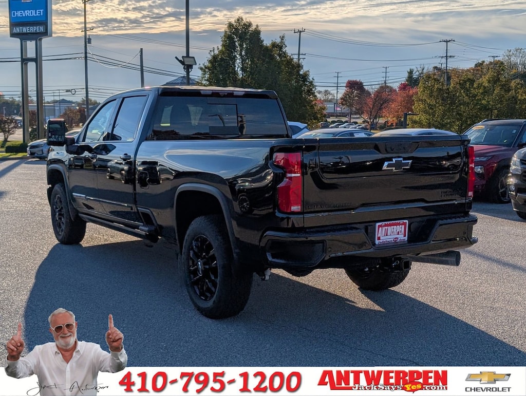 Gooseneck/5th Wheel Prep Package (Black Chevytec Spray-On Bedliner), High Country Premium Package (Power Sunroof), Hitch Package (LPO), Midnight Edition (Body-Color Mirror Caps, High Gloss Black Door Handles, Power-Retractable Black Assist Steps, and Wheels: 20 High Gloss Black Painted), Preferred Equipment Group 3LZ (120-Volt Bed Mounted Power Outlet, 120-Volt Interior Power Outlet, 170 Amp Alternator, 6 Rectangular Chromed Tubular Assist Steps, Auto-Dimming Inside Rear-View Mirror, Bed View Camera w/2 Trailer Camera Provisions, Bluetooth® For Phone, Chevrolet Connected Access Capable, Chrome Door Handles, Chrome Mirror Caps, Color-Keyed Carpeting Floor Covering, Compass, Deep-Tinted Glass, Electric Rear-Window Defogger, Front Carpeted Floor Mats, Front Chrome Recovery Hooks, Front LED Fog Lamps, Front Rain-Sensing Wipers, Heated 2nd Row Outboard Seats, Heated Steering Wheel, Hitch Guidance w/Hitch View, In-Vehicle Trailering App System, Keyless Open & Start, LED Cargo Area Lighting, Manual Tilt & Telescoping Steering Column, OnStar Services Capable, Polished Exhaust Tip, Power Door Locks, Power Front Windows w/Driver Express Up/Down, Power Front Windows w/Passenger Express Up/Down, Power Rear Windows w/Express Down, Power Sliding Rear Window w/Defogger, Push Button Start, Pwr Up/Down Tailgate Function w/Pwr Lock & Release, Rear Carpeted Floor Mats, Rear Cross Traffic Alert, Rear Wheelhouse Liners, Remote Vehicle Starter System, SiriusXM w/360L Trial Subscription, Standard Tailgate, Steering Wheel Audio Controls, Trailer Camera Provisions, Ultrasonic Front & Rear Park Assist, Unauthorized Entry Theft-Deterrent System, Universal Home Remote, Wi-Fi Hotspot Capable, Wireless Charging, Wireless Phone Projection, and Wrapped Steering Wheel), Suspension Package, Technology Package (15 Diagonal Multicolor Head-Up Display and Rear Camera Mirror), Up-Level Rear Seat w/Storage Package, Z71 Off-Road Package (Hill Descent Control), 10-Speed Automatic, 4WD, Black Leather, 10-Way Power Driver Seat Adjuster w/Lumbar, 10-Way Power Passenger Seat Adjuster w/Lumbar, 1st & 2nd Row All-Weather Floor Liners (LPO) (AAK), 220 Amp Alternator, 4-Wheel Disc Brakes, 7 Speakers, 720 Cold-Cranking Amps Heavy-Duty Battery, ABS brakes, Air Conditioning, Alloy wheels, AM/FM radio: SiriusXM with 360L, Apple CarPlay/Android Auto, Auto High-beam Headlights, Auto-dimming door mirrors, Auto-dimming Rear-View mirror, Automatic temperature control, Bodyside moldings, BOSE Premium 7-Speaker Sound System, Brake assist, Bumpers: body-color, Console-Mounted Safe (LPO), Delay-off headlights, Driver door bin, Driver Memory, Driver vanity mirror, Dual front impact airbags, Dual front side impact airbags, Durabed Pickup Bed, Electronic Stability Control, Emergency communication system: OnStar, Engine Block Heater, Exhaust Brake, EZ Lift Power Lock & Release Tailgate, Floor-Mounted Center Console, Front anti-roll bar, Front Bucket Seats, Front Center Armrest, Front dual zone A/C, Front fog lights, Front License Plate Kit, Front reading lights, Front wheel independent suspension, Fully automatic headlights, Garage door transmitter, Genuine wood console insert, Genuine wood dashboard insert, Genuine wood door panel insert, Heated door mirrors, Heated Driver & Front Outboard Passenger Seating, Heated front seats, Heated rear seats, Heated steering wheel, High Idle Switch, Illuminated entry, LED Smoked Amber Roof Marker Lamps, Low tire pressure warning, Memory seat, Multi-Flex Tailgate, Multi-Flex Tailgate Audio System by Kicker (LPO), Occupant sensing airbag, Outside temperature display, Overhead airbag, Overhead console, Panic alarm, Passeng