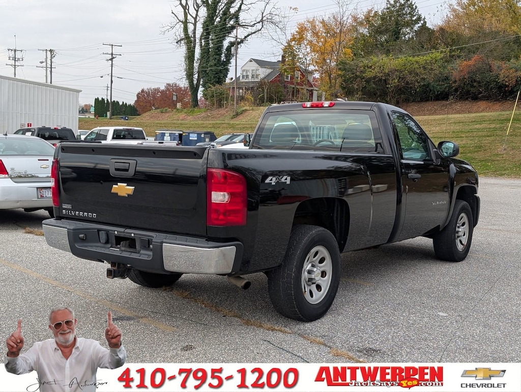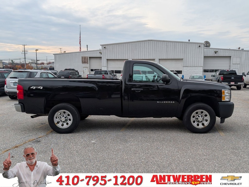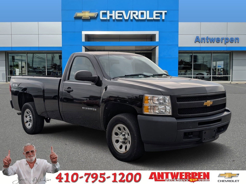 CARFAX One-Owner. 6-Speed Automatic Electronic with Overdrive, 4WD, Light Cashmere/Dark Cashmere Cloth. Priced below KBB Fair Purchase Price!2012 Chevrolet Silverado 1500 Work Truck Black 4WD15/21 City/Highway MPG Odometer is 19569 miles below market average!Reviews:* Smooth and quiet ride; comfortable seats; powerful V8 options. Source: Edmunds* With its numerous possible configurations, the 2012 Chevy Silverado half-ton pickup will please all but the chronically indecisive. From cab configurations to bed lengths to trim and option packages, the Silverado is the half-ton jack of all trades, including models that can run on E85. Source: KBB.comHeavy Duty Cooling Package (Heavy-Duty Air-to-Oil External Engine Oil Cooler and Heavy-Duty Auxiliary External Transmission Oil Cooler), Heavy-Duty Handling/Trailering Suspension Package, Heavy-Duty Trailering Package (Retail) (Heavy-Duty Rear Automatic Locking Differential), Skid Plate Package, Snow Plow Prep Package (160 Amp Alternator and Provision for Cab Roof-Mounted Lamp/Beacon), Solid Smooth Ride Suspension Package, Work Truck Equipment Group, 6-Speed Automatic Electronic with Overdrive, 4WD, Light Cashmere/Dark Cashmere Cloth, 17 x 7.5 6-Lug Painted Steel Wheels, 4 Speakers, ABS brakes, Air Conditioning, AM/FM Stereo w/Seek & Scan/Digital Clock, Delay-off headlights, Driver door bin, Driver-Side Manual Lumbar Control Seat Adjuster, Dual front impact airbags, Dual front side impact airbags, Electronic Stability Control, Front 40/20/40 Split-Bench Seat, Front anti-roll bar, Front Center Armrest w/Storage, Front Chrome Bumper, Front License Plate Bracket, Front reading lights, Front wheel independent suspension, Fully automatic headlights, Low tire pressure warning, Occupant sensing airbag, Overhead airbag, Overhead console, Passenger door bin, Passenger vanity mirror, Power Door Locks w/Remote Keyless Entry, Power steering, Rear step bumper, Remote Keyless Entry w/2 Transmitters, Speed control, Tachometer, Tilt steering wheel, Traction control, Variably intermittent wipers, and Vinyl Seat Trim.5 STAR RATED! NEW CAR WARRANTY STANDARD 3YR / 36K - FACTORY COMPREHENSIVE WARRANTY 5YR / 60K - POWERTRAIN WARRANTY COMPLIMENTARY ROADSIDE ASSISTANCE CALL 1-800-243-8872 USED CAR WARRANTY STANDARD 20 YEAR/ 200,000 MILE POWERTRAIN WARRANTY WHICHEVER COMES FIRST SALES HOURS M-F 9 A.M- 7 P.M, SAT- 9 A.M. - 5 P.M SUNDAY CLOSED. Welcome to your Maryland Chevrolet dealership! At Antwerpen Chevrolet, we know that you have plenty of choices when looking for new or used cars in Eldersburg, MD. What sets us apart? We are family-owned, and when you visit our dealership, it shows. As an Eldersburg car dealer also serving Clarksville customers, we offer a wide selection of new and used trucks, cars and SUV's for your regular commute! We've also been serving as your Westminster Chevrolet dealer since 1979 and are proud to bring you the newest and most fuel-efficient Chevrolet vehicles in Maryland. With cars like the Chevy Bolt and Malibu, we are sure to have the automobile to suit your needs. We also have a wide selection of SUVs and trucks such as the Silverado, Equinox, and Tahoe here at your Maryland Chevrolet dealership.