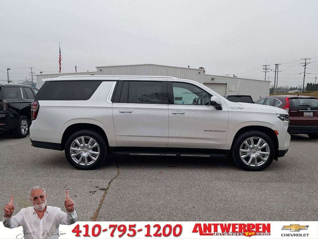 NEW ARRIVAL! ONE OWNER, NO ACCIDENTS OR DAMAGES REPORTED. 2021 CHEVROLET SUBURBAN HIGH COUNTRY, IRIDESCENT PEARL TRICOAT, 4WD, EXPERIENCE THE PERFECT BLEND OF POWER, LUXURY, AND ADVANCED TECHNOLOGY IN THIS 2021 CHEVROLET SUBURBAN HIGH COUNTRY, FINISHED IN THE BREATHTAKING IRIDESCENT PEARL TRICOAT. WITH ITS COMMANDING PRESENCE, REFINED CRAFTSMANSHIP, AND SOPHISTICATED ENGINEERING, THIS SUBURBAN IS DESIGNED TO IMPRESS EVERY DRIVER AND PASSENGER FROM THE FIRST GLANCE TO THE FINAL MILE. PERFORMANCE & CAPABILITY, UNDER THE HOOD, THE HIGH COUNTRY DELIVERS CONFIDENT PERFORMANCE WITH A 6.2L V8 ENGINE PAIRED TO A 10-SPEED AUTOMATIC TRANSMISSION, OFFERING BOTH STRENGTH AND SMOOTHNESS FOR EVERY DRIVE. THE 4WD SYSTEM AND 2-SPEED ACTIVE ELECTRONIC AUTOTRAC TRANSFER CASE ENSURE STABILITY AND CONTROL IN ALL CONDITIONS, WHILE MAGNETIC RIDE CONTROL ADAPTIVE SUSPENSION AND HILL DESCENT CONTROL PROVIDE A COMPOSED, LUXURIOUS RIDE ON ANY TERRAIN. LUXURY & COMFORT, STEP INTO A CABIN THAT REDEFINES PREMIUM. THE PERFORATED LEATHER SEATING SURFACES AND HEATED & VENTILATED FRONT SEATS, ALONG WITH HEATED 2ND ROW OUTBOARD SEATS, SURROUND YOU IN YEAR-ROUND COMFORT. THE 12-WAY POWER DRIVER & PASSENGER SEAT ADJUSTERS, MEMORY SETTINGS, AND POWER TILT & TELESCOPIC STEERING COLUMN LET YOU TAILOR EVERY DETAIL TO YOUR LIKING. ENJOY OPEN-AIR DRIVING WITH THE DUAL PANE POWER PANORAMIC SUNROOF, AND LET THE TRI-ZONE AUTOMATIC CLIMATE CONTROL KEEP EVERY PASSENGER COMFORTABLE. TECHNOLOGY & INNOVATION, THE SUBURBAN HIGH COUNTRY IS LOADED WITH CUTTING-EDGE FEATURES: 15 DIAGONAL MULTI-COLOR HEAD-UP DISPLAY VITAL DRIVING INFO RIGHT IN YOUR LINE OF SIGHT. CHEVROLET INFOTAINMENT 3 PREMIUM SYSTEM WITH NAVIGATION, APPLE CARPLAY, ANDROID AUTO, AND SIRIUSXM 360L. BOSE 10-SPEAKER SURROUND SOUND SYSTEM WITH CENTERPOINT A CONCERT-QUALITY EXPERIENCE IN EVERY SEAT. REAR SEAT MEDIA SYSTEM DUAL SCREENS TO ENTERTAIN PASSENGERS ON LONG TRIPS. HD SURROUND VISION CAMERA AND REAR CAMERA MIRROR WASHER UNMATCHED CLARITY AND AWARENESS AROUND THE VEHICLE. SAFETY & DRIVER CONFIDENCE, DRIVE WITH PEACE OF MIND THANKS TO AN EXTENSIVE SUITE OF DRIVER-ASSISTANCE FEATURES: LANE KEEP ASSIST WITH LANE DEPARTURE WARNING, LANE CHANGE ALERT WITH SIDE BLIND ZONE ALERT, REAR CROSS TRAFFIC ALERT AND REAR PEDESTRIAN ALERT, FRONT & REAR PARK ASSIST, SAFETY ALERT SEAT, ADAPTIVE CRUISE CONTROL AND AUTO HIGH-BEAM HEADLIGHTS, EVERY JOURNEY IS PROTECTED BY CHEVROLETS LEGENDARY SAFETY ENGINEERING AND ONSTAR CONNECTED SERVICES. DESIGN & DETAILS, THIS HIGH COUNTRY EDITION RADIATES ELEGANCE WITH 22 STERLING SILVER PREMIUM PAINTED ALLOY WHEELS, CHROME DOOR HANDLES, AND DUAL EXHAUST SYSTEM THAT HINT AT ITS STRENGTH AND SOPHISTICATION. THE HANDS-FREE POWER PROGRAMMABLE LIFTGATE AND ROOF RACK RAILS ADD FUNCTIONALITY WITHOUT COMPROMISING STYLE. HIGHLIGHTS AT A GLANCE, 6.2L V8 ENGINE, 4WD IRIDESCENT PEARL TRICOAT EXTERIOR, JET BLACK INTERIOR, PANORAMIC SUNROOF, 22 PREMIUM WHEELS. BOSE PREMIUM SURROUND AUDIO. HEAD-UP DISPLAY, NAVIGATION, HD SURROUND VISION. HEATED & VENTILATED LEATHER SEATS, 2ND ROW CAPTAINS CHAIRS. REAR SEAT ENTERTAINMENT, ADAPTIVE SUSPENSION