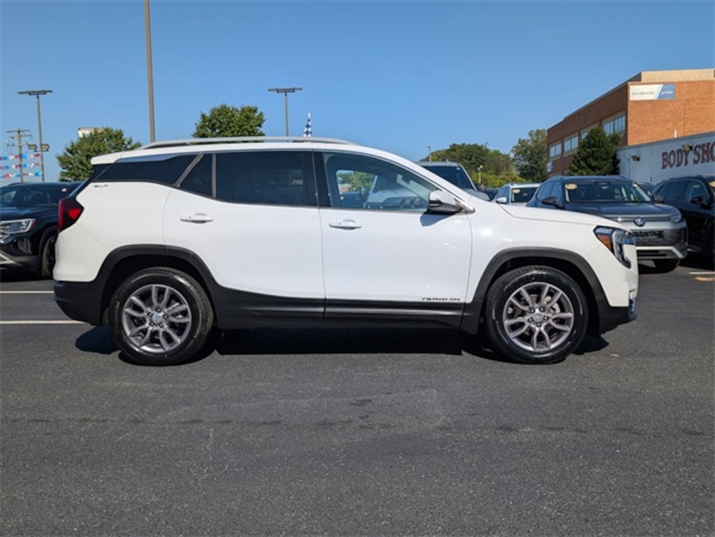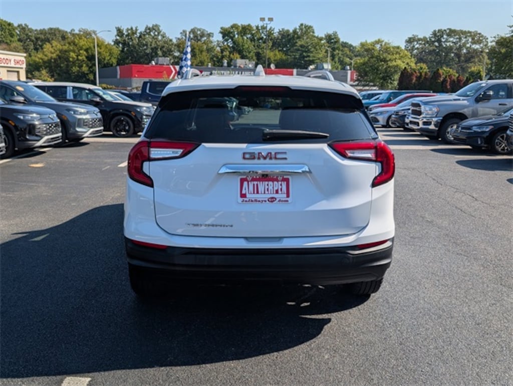 *ANTWERPEN 20YR/200K WARRANTY*, 2 USB Data Ports, 2 USB Data Ports w/SD Card Reader, 3.47 Axle Ratio, 4-Wheel Disc Brakes, 6 Speakers, 6-Speaker Audio System Feature, 6-Way Power Front Passenger Seat, 8-Way Power Driver Seat Adjuster, ABS brakes, Air Conditioning, Alloy wheels, AM/FM radio: SiriusXM, Auto High-beam Headlights, Auto-dimming Rear-View mirror, Automatic temperature control, Bluetooth® For Phone, Brake assist, Bumpers: body-color, Compass, Delay-off headlights, Deleted 3 Years of OnStar & Connected Services Plan, Driver & Front Passenger Heated Seats, Driver door bin, Driver vanity mirror, Dual front impact airbags, Dual front side impact airbags, Electronic Stability Control, Emergency communication system: OnStar and GMC connected services capable, Four wheel independent suspension, Front anti-roll bar, Front Bucket Seats, Front Center Armrest, Front dual zone A/C, Front fog lights, Front Passenger 2-Way Power Lumbar, Front reading lights, Fully automatic headlights, Garage door transmitter, Heated door mirrors, Heated front seats, Heated steering wheel, Illuminated entry, Low tire pressure warning, Occupant sensing airbag, Outside temperature display, Overhead airbag, Overhead console, Panic alarm, Passenger door bin, Passenger vanity mirror, Perforated Leather-Appointed Seat Trim, Power door mirrors, Power Driver Lumbar Control, Power driver seat, Power Liftgate, Power passenger seat, Power steering, Power windows, Preferred Equipment Group 4SA, Radio data system, Radio: GMC Infotainment Audio System w/8" Display, Rear anti-roll bar, Rear seat center armrest, Rear window defroster, Rear window wiper, Remote keyless entry, Roof rack: rails only, Security system, SiriusXM Radio, Speed control, Speed-sensing steering, Split folding rear seat, Spoiler, Steering wheel mounted audio controls, Tachometer, Telescoping steering wheel, Tilt steering wheel, Traction control, Trip computer, Turn signal indicator mirrors, Variably intermittent wipers, Wheels: 18" x 7" Silver Painted Aluminum, Wireless Apple CarPlay/Wireless Android Auto. Summit White 2023 GMC Terrain SLT FWD 9-Speed Automatic 1.5L DOHC