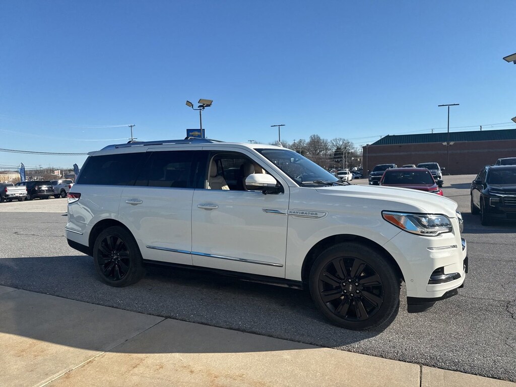 CARFAX One-Owner. *MARYLAND STATE INSPECTION*, *APPLE CAR PLAY/ANDRIOD AUDIO*, *BACK-UP CAMERA*, *HEADS-UP DISPLAY*, *PARKING SENSORS*, *REMOTE START*, *NAVIGATION SYSTEM*, *HEATED SEATS*, *HEATED AND COOLING SEATS*, *SUNROOF/MOONROOF*, *ANTI-LOCK BRAKES*, *TOW PACKAGE*, *CARFAX ONE-OWNER*, *THIRD ROW SEAT*, 4WD, Sandstone Leather.2022 Lincoln Navigator Reserve Pristine White Metallic Tri-Coat 4WD16/22 City/Highway MPGEquipment Group 201A Reserve I, Heavy-Duty Trailer Tow Package (Class IV w/4-Pin & 7-Pin Connectors, Front Tow Hooks, Pro-Trailer Backup Assist 2.0, Smart Trailer Tow, Tiered Cargo Area Management System, Trailer Brake Controller, and Trailer Sway Control), Luxury Package (Illuminated 1st & 2nd Row Seat Belts, Lincoln Lit Star in Grille, Perfect Position Seats (30-Way) w/Active Motion, and Revel Ultima 3D Audio System w/28 Speakers), Monochromatic Package (Body-Color Exterior Mirror Finish, Monochromatic Lincoln Badge, Monochromatic Lincoln Grille, and Wheels: 22 Black Aluminum), 4WD, Sandstone Leather, 14 Speakers, 3.73 Axle Ratio, 3rd row seats: split-bench, 4-Wheel Disc Brakes, ABS brakes, Adaptive suspension, Adjustable pedals, Air Conditioning, All-Weather Floor Liners w/Carpet Floor Mats, Alloy wheels, AM/FM radio: SiriusXM with 360L, Audio memory, Auto High-beam Headlights, Auto Start-Stop Technology, Auto tilt-away steering wheel, Auto-dimming door mirrors, Auto-dimming Rear-View mirror, Auto-leveling suspension, Automatic temperature control, Bodyside moldings, Brake assist, Bumpers: body-color, Chrome Roof Rack w/Black Crossbars, Compass, Delay-off headlights, Driver door bin, Driver vanity mirror, Driver's Seat Mounted Armrest, Dual front impact airbags, Dual front side impact airbags, Electronic Stability Control, Electronic Traction Assist (eLSD), Emergency communication system: 911 Assist, Exterior Parking Camera Rear, Four wheel independent suspension, Front anti-roll bar, Front Bucket Seats, Front dual zone A/C, Front fog lights, Front reading lights, Fully automatic headlights, Garage door transmitter, Genuine wood dashboard insert, Genuine wood door panel insert, Head restraints memory, Heads-Up Display, Heated door mirrors, Heated front seats, Heated rear seats, Heated steering wheel, HVAC memory, Illuminated entry, Leather steering wheel, Low tire pressure warning, Memory seat, Navigation system: Connected Navigation (3-year trial), Occupant sensing airbag, Outside temperature display, Overhead airbag, Overhead console, Panic alarm, Passenger door bin, Passenger seat mounted armrest, Passenger vanity mirror, Pedal memory, Power adjustable rear head restraints, Power door mirrors, Power driver seat, Power Liftgate, Power moonroof: Panoramic Vista Roof, Power passenger seat, Power steering, Power windows, Prem Lthr Auto Htd/Ventiltd Perfect Position Seats, Radio data system, Radio: Revel AM/FM/HD/MP3 Audio System, Rain sensing wipers, Rear air conditioning, Rear anti-roll bar, Rear audio controls, Rear reading lights, Rear window defroster, Rear window wiper, Reclining 3rd row seat, Remote keyless entry, Security system, SiriusXM w/360L, Slow Climb Drive Mode, Speed control, Speed-sensing steering, Speed-Sensitive Wipers, Split folding rear seat, Spoiler, Steering wheel memory, Steering wheel mounted audio controls, SYNC 4 Communications & Entertainment System, Tachometer, Telescoping steering wheel, Tilt steering wheel, Traction control, Trip computer, Turn signal indicator mirrors, Variably intermittent wipers, Ventilated front seats, Ventilated rear seats, Voice-Activated Touchscreen Navigation System, and Wheels: 22 Bright Machined Aluminum.5 STAR RATED! NEW CAR WARRANTY STANDARD 3YR / 36K - FACTORY COMPREHENSIVE WARRANTY 5YR / 60K - POWERTRAIN WARRANTY COMPLIMENTARY ROADSIDE ASSISTANCE CALL 1-800-243-8872 USED CAR WARRANTY STANDARD 20 YEAR/ 200,000 MILE POWERTRAIN WARRANTY WHICHEVER COMES FIRST SALES HOURS M-F 9 A.M- 7 P.M, SAT- 9 A.M. - 5 P.M SUNDAY CLOSED